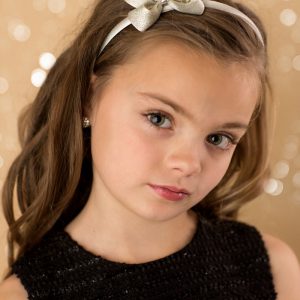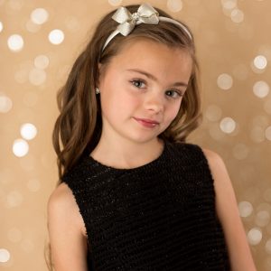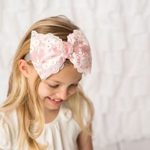 Oversized bow in dusky pink with gold lace and pearls on alice band