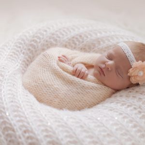 Beautiful peach silk flower decorated with pearl on a delicate ivory lace headband