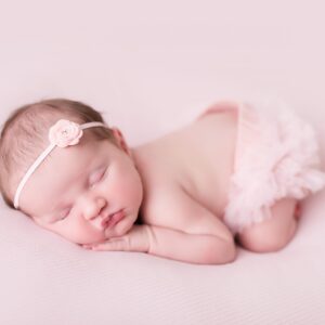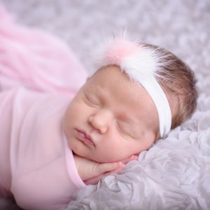 Light pink felt flower with Swarovski crystal on soft elastic headband