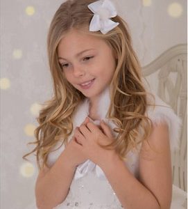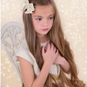 White double large bow with white pom pom on a alligator clip.