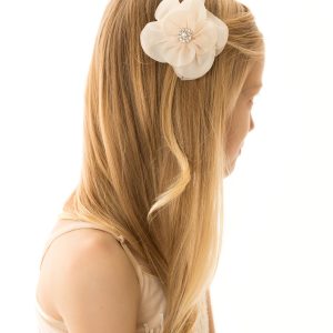Ivory chiffon flower with rhinestone on an alligator clip.