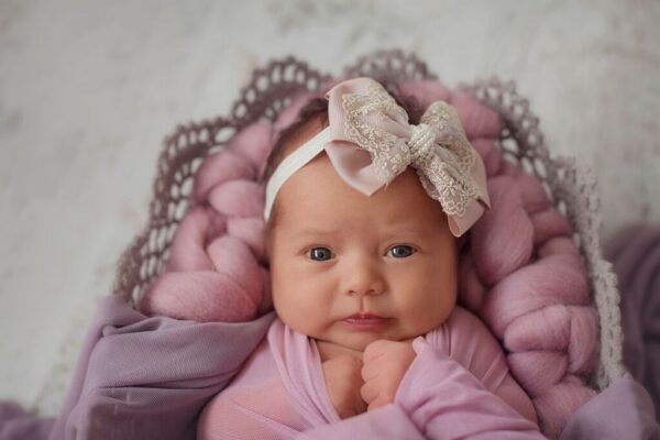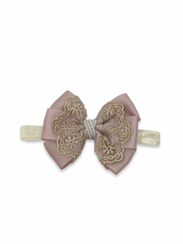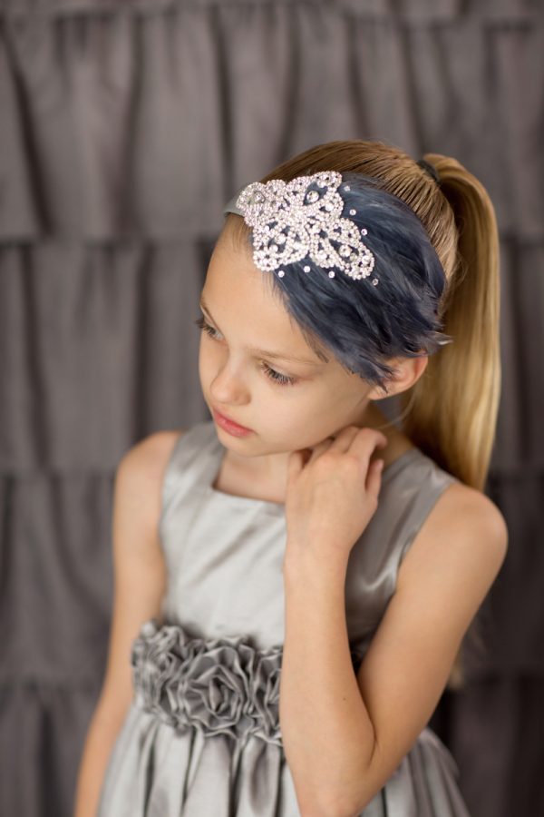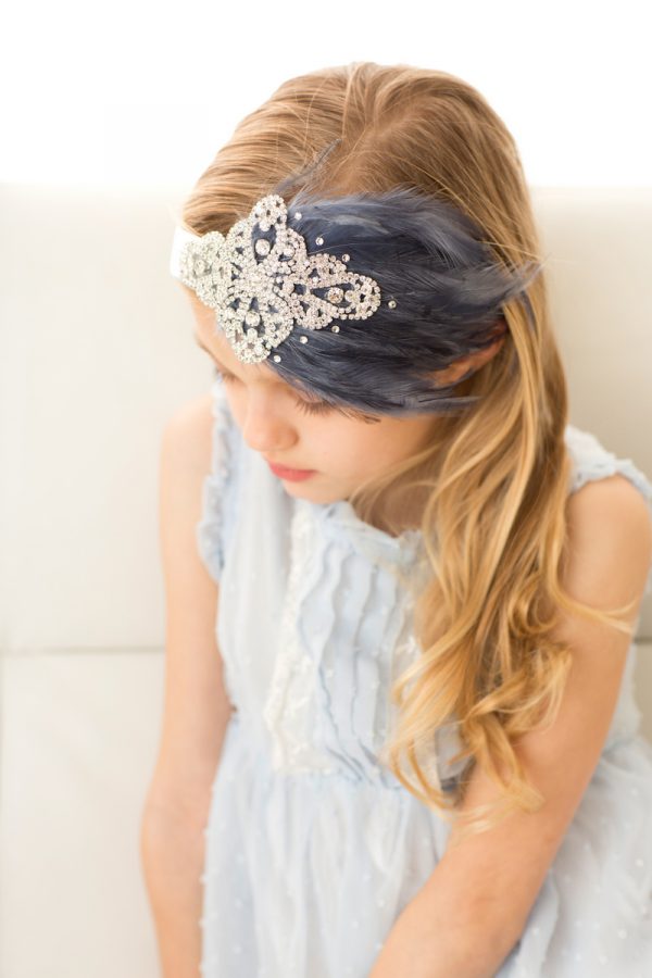 The headband is made from soft elastic which has been hand finished with a pearl and diamanté trim.