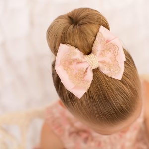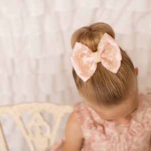 Pink medium size double bow on pink soft elastic