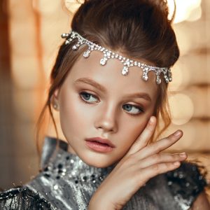 Delicate lace decorated with diamante and butterfly with elastic backing headband