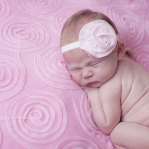 Delicate pink silk flower with a dazzling rhinestone centre on a soft elastic headband
