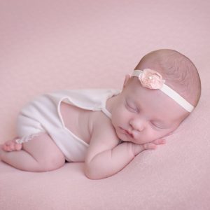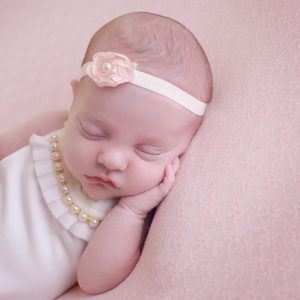 Pink chiffon flower with rhinestone on soft elastic lace headband