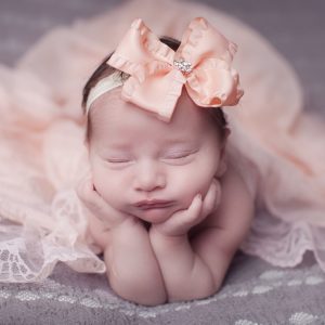 Peach frilly double large bow with rhinestone on soft elastic headband