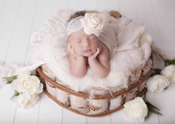Ivory pearl bow with rhinestone on ivory elastic headband
