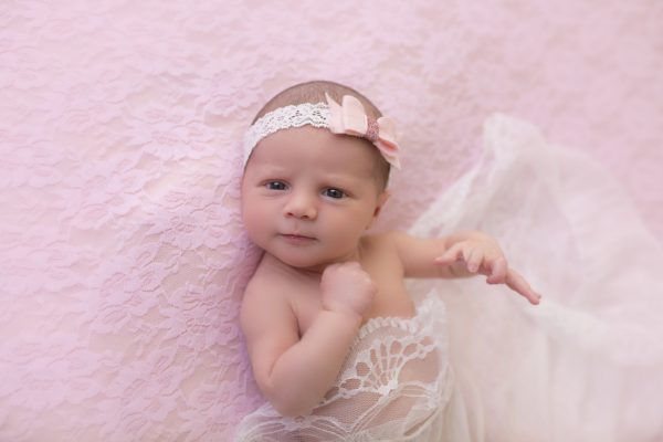 Soft felt pink bow with glitter on soft lace headband