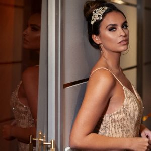 Gold butterfly with Swarovski crystals on a slim gold alice band