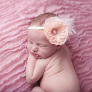 Peach chiffon flower trim with pearl on soft elastic headband
