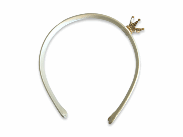 Gold crown on an ivory alice band.