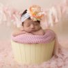 Outlet, SaleGorgeous peach flower decorated with pearl and rhinestone button on soft elastic lace