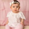 Hair Accessories, Party, Special occassionsIvory chiffon rosey bow with large rhinestone and pearl button on a soft elastic headband.