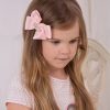 Large double grosgrain bow with crown rhinestone button on a clip.
