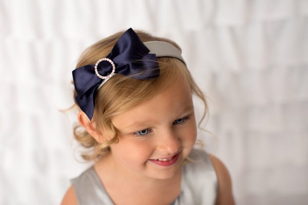 Outlet, Sale, Solid headbandsNavy grosgrain double bow decorated with rhinestone on a navy satin alice band.