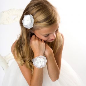 BraceletsOff white mink pom poms on a soft elastic bracelet.