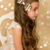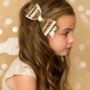 Bows, Hair AccessoriesLarge pale gold glitter bow with rhinestone on a clip.