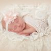 Oversized peach soft chiffon flower decorated with pearls and rhinestone on a soft elastic soft headband