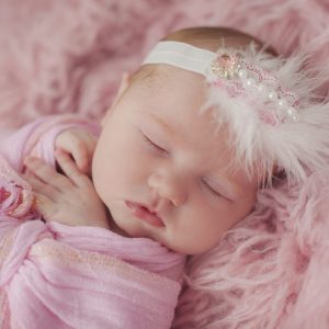 Beautiful peach silk flower decorated with pearl on a delicate ivory lace headband