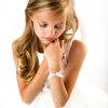Outlet, SaleIvory satin small bow with Swarovski on a soft elastic bracelet.