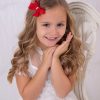 Red medium double grosgrain bow with silver glitter ribbon on an alligator clip.