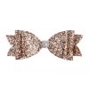 Large rose gold glitter bow with rhinestone on a clip.