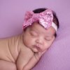 Sequin pink bow on soft elastic headband