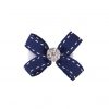 Small double navy and white bow with rhinestone