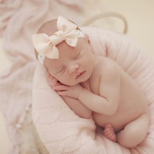 Soft felt bow in pink with pearl and diamante rhinestone on lace