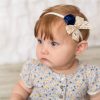 Vintage bow with a navy rose and gold cased crystal on a soft elastic headband