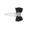 Grosgrain bow in black decorated with rhinestone on a snap clip