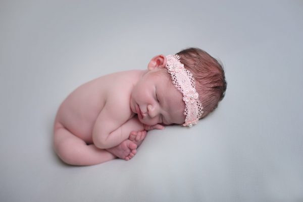 Pink chiffon flower with rhinestone on soft elastic lace headband